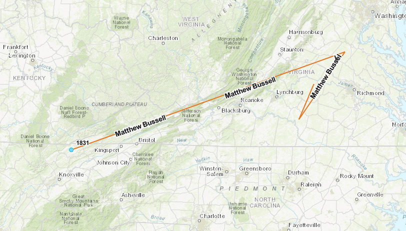Now I chose my ancestor, Matthew Bussell. Here is his map: