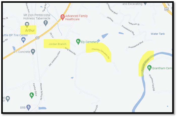 LEWIS FRANKLIN CHUMLEY was born in 1806 in Amelia County, Virginia (It has never been proven that Lewis’ middle name was Franklin. Only found on Marriage license and told by family). He died in 1880 in Arthur, Claiborne County, Tennessee. He was buried in Cumberland Gap, Claiborne County, Tennessee (Ely Cemetery on King Bend Road next to grandchild Fannie Chumley, child of James Franklin Chumley and Sarah B Chumley.). He married MARY ELIZABETH “MAE” FREEMAN (daughter of Peter Freeman, Jr and Elizabeth “Betsey” Truelove) in 1830 in Arthur, Claiborne County, Tennessee. She was born on 14 Aug 1810 in North Carolina. She died on 08 Oct 1886 in Condray, Dent County, Missouri.